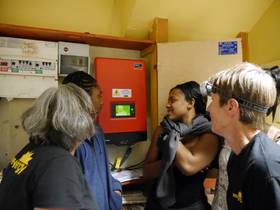All electrical power used for site tools etc. during construction was provided by ‘Cyrus’ the Greenpeace mobile solar generator. This uses a 2kW solar array, 100kWh battery store and 7.5kW & 15kW sine wave inverters.