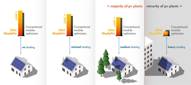 These both use intelligent shade management integrated in the inverter, which can reduce yield losses in the case of partial shading and maximises the yield of a photovoltaic system - without installing additional components.