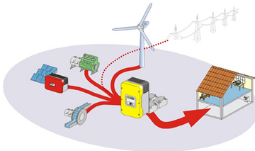 - Power from any generators is first supplied to the loads and any surplus goes into battery charging. If loads increase, power is taken out of the batteries.