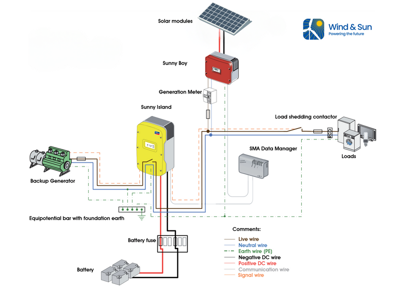 - Very simple and flexible design of off-grid systems is possible since different electrical generators and loads can be connected on the AC side (using Sunny Boy inverters).