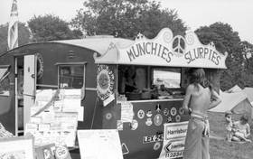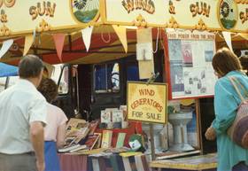 Eager to support this movement, Steve put together an anti-nuclear display and helped run the 'Munchies & Slurpies' caravan - selling vegetarian food at festivals and events with the aim of raising money to provide free food for the peace camp demonstrators. To show a positive and viable alternative to a nuclear future, Steve invested in a small wind generator and fitted it to the back of his converted ambulance. This generated lots of interest and requests for information about where such things could be purchased (this was long before the internet was widely accessible).