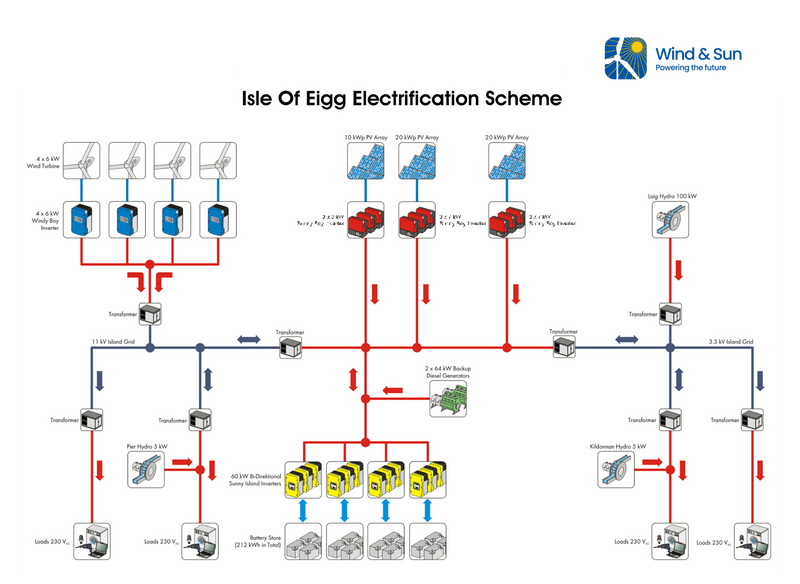 This enables the creatation of a local 'mini-grid' which can be easily extended to power additional properties or allow the integration of new renewable generation. Generation can be sited at the most appropriate locations and power delivered across long distances to properties as it is needed.