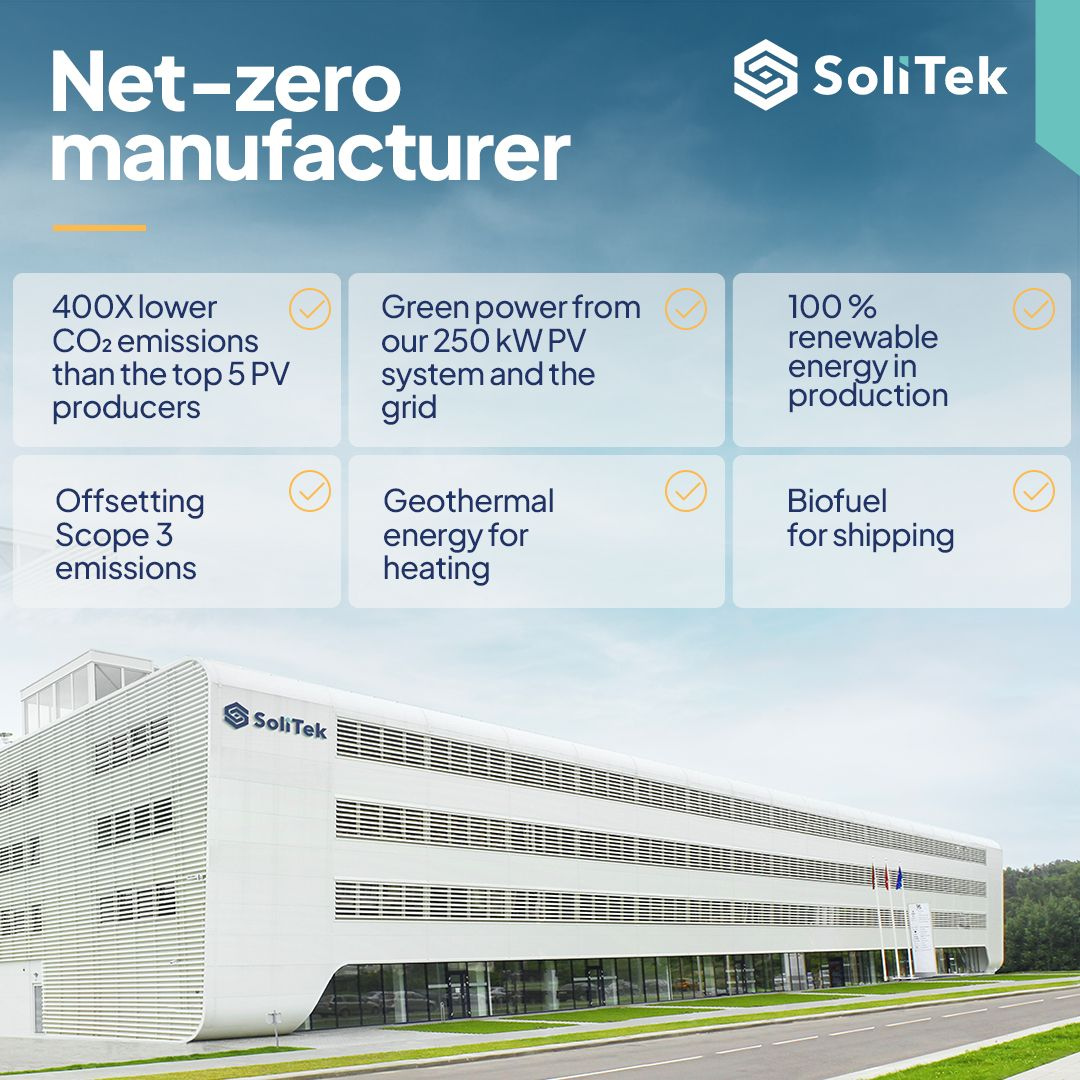 SoliTek is committed to an environmentally friendly manufacturing process with a net-zero emissions approach, reducing their carbon footprint at every stage.