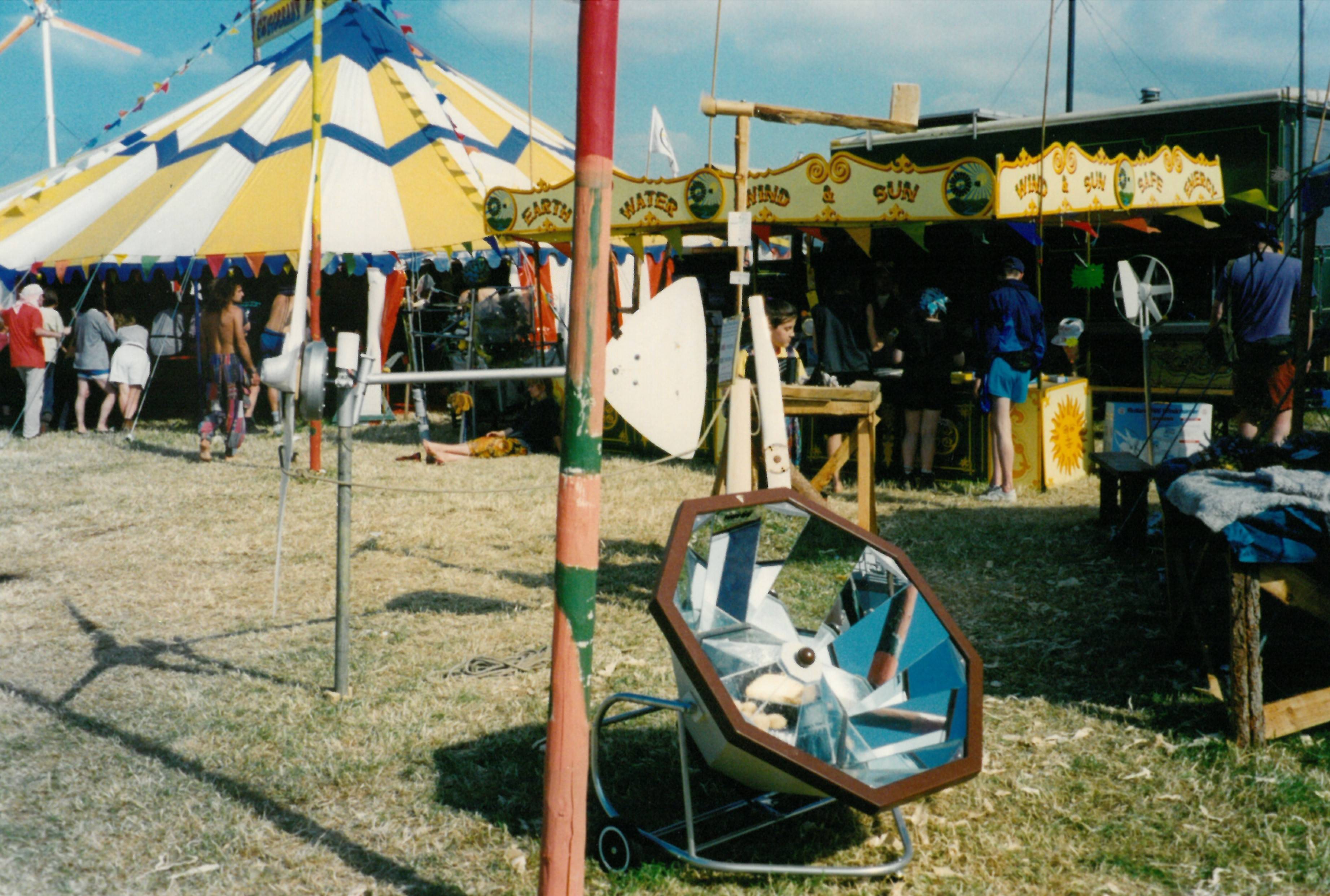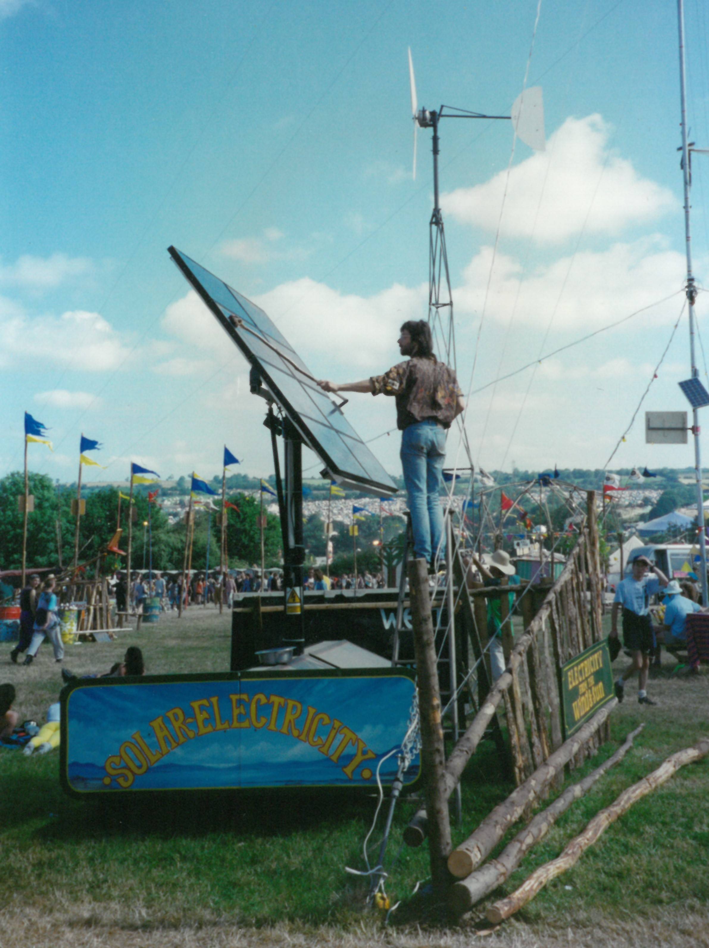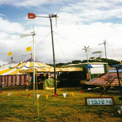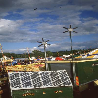 We have been running PA equipment and stage lighting at the Glastonbury Festival completely off-grid since 1986. This concept was originally conceived as a way to demonstrate the potential of renewable energy, by presenting a positive alternative to nuclear energy & nuclear weapons.