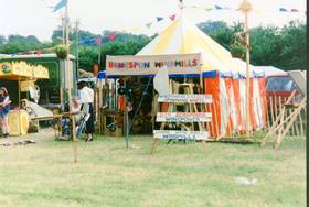 For the first few years we worked closely with the Centre for Alternative Technology from Machynlleth who brought a display and put up their eye-catching 'Cretan' style windmill.
