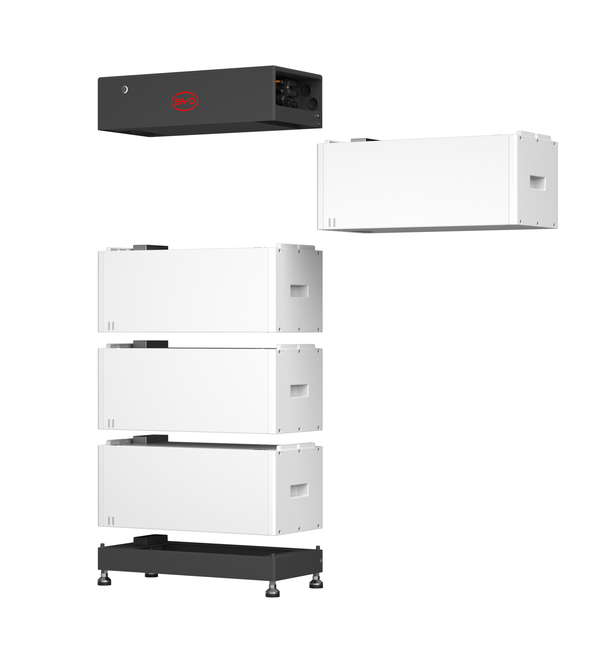 The BYD Battery-Box HVS+ and HVM+ are modular high voltage lithium iron phosphate (LFP) battery packs for use with an external inverter.
