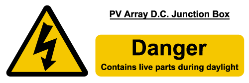 The d.c. junction box must be labelled with: 'PV array d.c. junction box, Danger contains live parts during daylight'.
