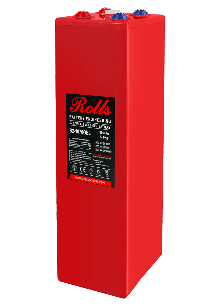 Optimised for stringed use in large sized solar installations, Rolls OPzV Gel range is designed to maximise efficiency and cycle life, making them ideal for off-grid solar applications.