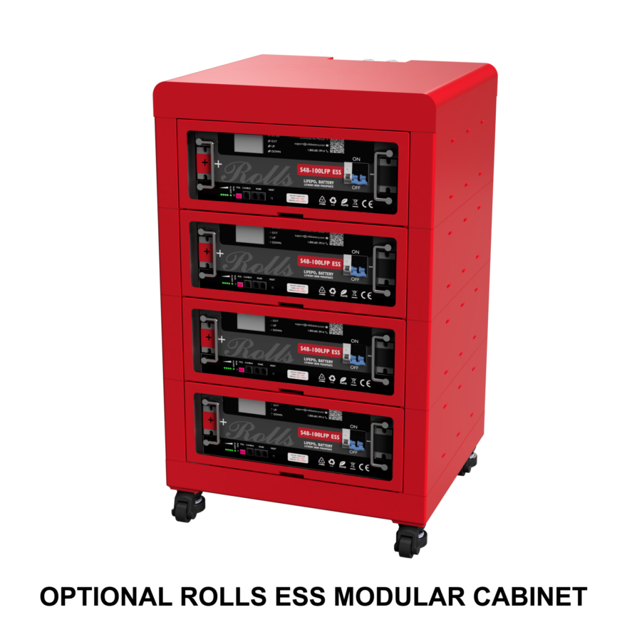 The optional Rolls LFP ESS modular cabinet allows up to 8-unit installation with top mount