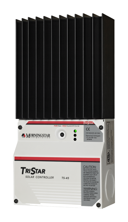 These powerful tropicalised three-function PWM controllers provide reliable solar battery charging, load control or diversion regulation to divert excess power to a dump load for use in solar, wind or hydroelectric systems. (Two or more controllers may be used to provide multiple functions). Large heat sink enables operation at up to 45°C without de-rating. 3 LED's indicate battery status, alarms and faults. Optional LCD digital backlit display (included with -M version) provides system & controller information: battery voltage; current; temperature; amp-hours and error mode. Versions mount either on face of the controller or remotely. For use in either 12, 24 or 48V systems. Fully adjustable with DIP switches. RS232 communication for custom settings, data logging, remote monitoring/control. Reverse polarity, short circuit, over-current, high temperature and over-voltage protection. Operation from - 40 to+ 45°C. Terminals take up to 35sqmm cables.